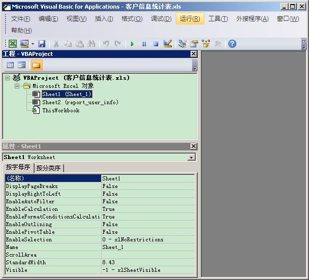 a) 打开导出的Excel文件,键入快捷键“ALT+F11”,弹出Visual Bisic宏编辑窗口,如图3所示